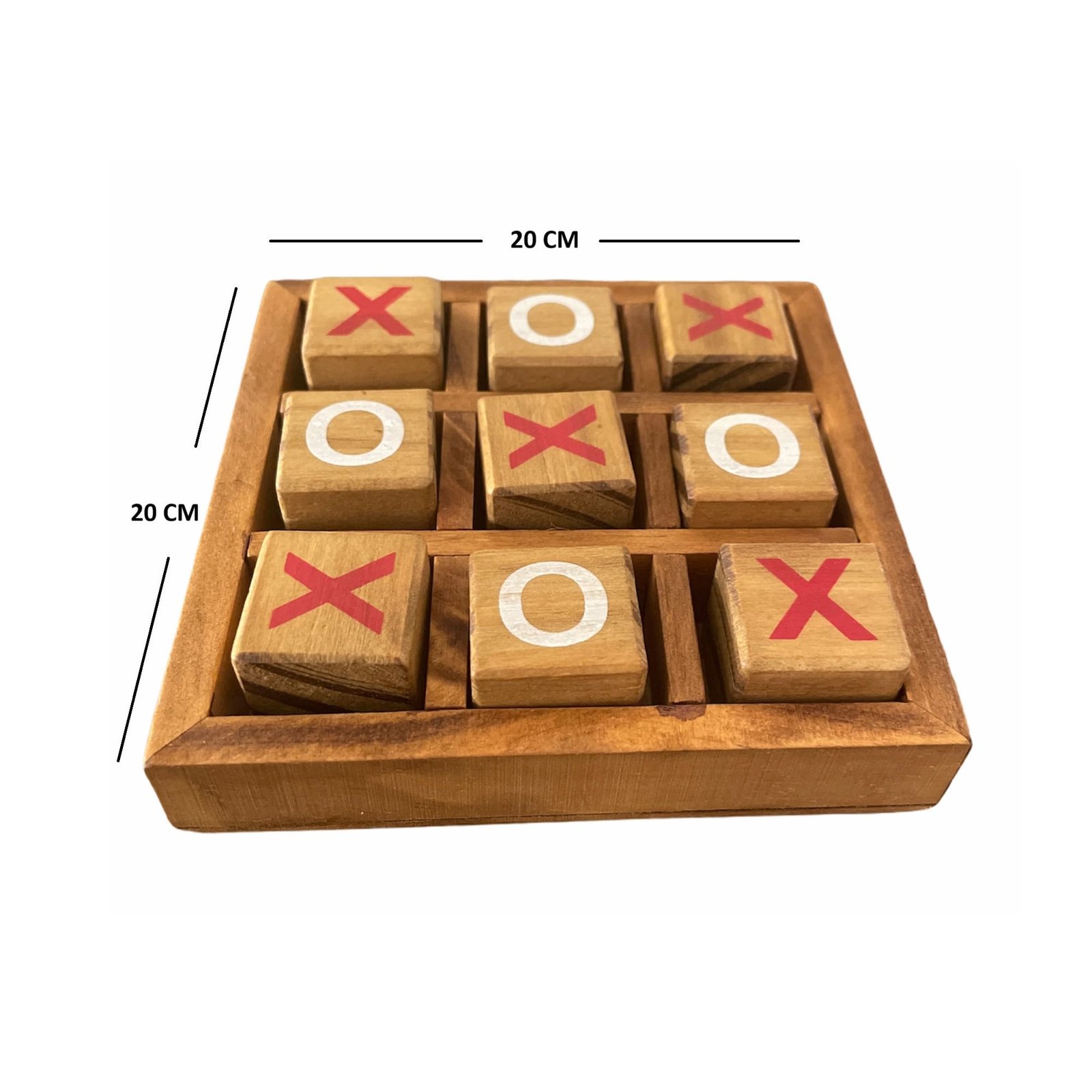A classic wooden tic tac toe game in a medium 20×20 cm size, perfect for family fun and strategic play.